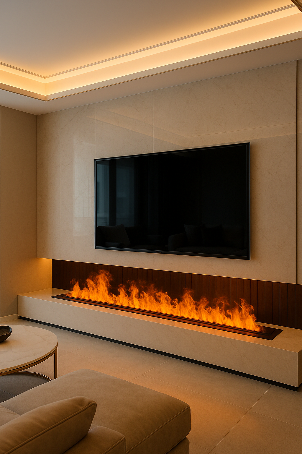 Stel je voor: het zachte dansen van vlammen, een warme gloed die de kamer vult, en dat allemaal zonder hitte, rook of onderhoud. Onze waterdamp-sfeerhaarden creëren een levensechte vuurervaring met pure waterdamp en LED-licht — zo realistisch dat je twee keer kijkt.
