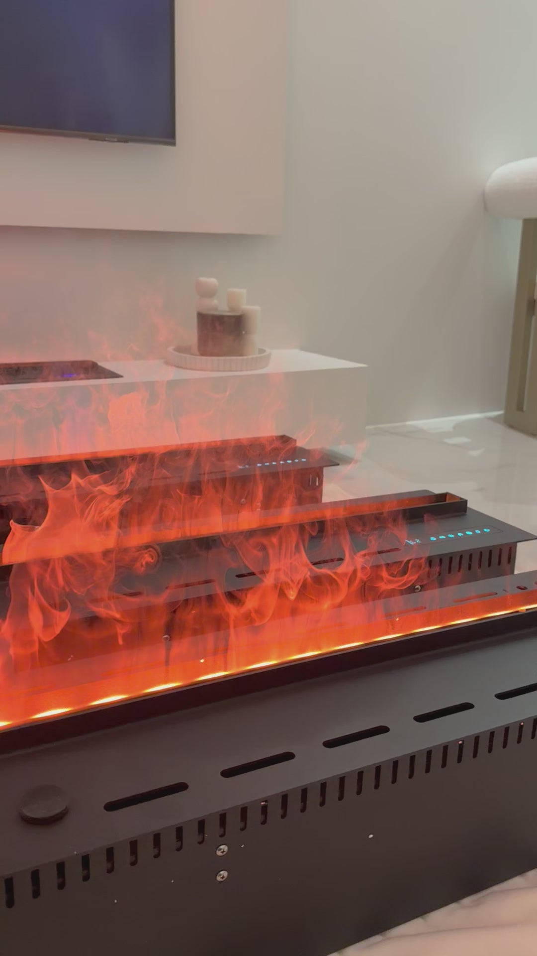 De Vida Sfeerhaard is een moderne elektrische haard die gebruikmaakt van innovatieve waterdamptechnologie om een uiterst realistisch en sfeervol vlambeeld te creëren. Door middel van opstijgende fijne waterdamp, die wordt aangelicht door warme amberkleurige LED-verlichting, ontstaat een levendige vlamillusie die nauwelijks van echt vuur te onderscheiden is. Deze technologie zorgt voor een aangename ambiance zonder warmteontwikkeling of uitstoot van schadelijke stoffen.